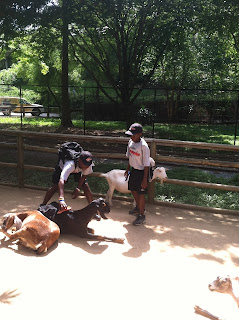 | L.E.A.D. Jr. Ambassadors D’Anthony Morrow (left) and Ryan Martin (right) pet the goats at the Atlanta Zoo |