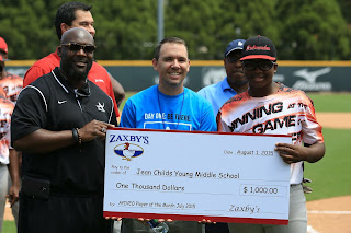 Rendell Jackson, Assistant Director of Athletics, Atlanta Public Schools; David Jernigan, Atlanta Public School Deputy Superintendent; Isaiah Jimerson, L.E.A.D. Ambassador, Benjamin E. Mays High School c/o 2019. Isaiah donated $1,000 to his middle school alma mater Jean Childs Young as the recipient of the APIVEO Player of the Month. |
